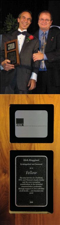 Maggiani’s plaque reads “For your service as a business, STC, and Vermont chapter leader and for your exemplary contributions to the technical communication profession through support of civic activities at all levels… and because you rock!”