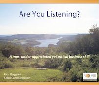 Solari President Rich Maggiani presented an informative and instructive session, “Listening! A Most Vital Business Skill” (slides), on the value of listening in the workplace. Professionals earn between 40% and 80% of their salaries listening. Attendees to this session learned how they can make the most of this by employing exceptional listing skills. We can all listen better.